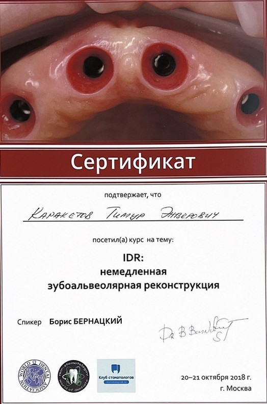2018г. — Авторский курс Борис Бернацкий. Немедленная зубоальвеолярная реставрация. World Dental Association;